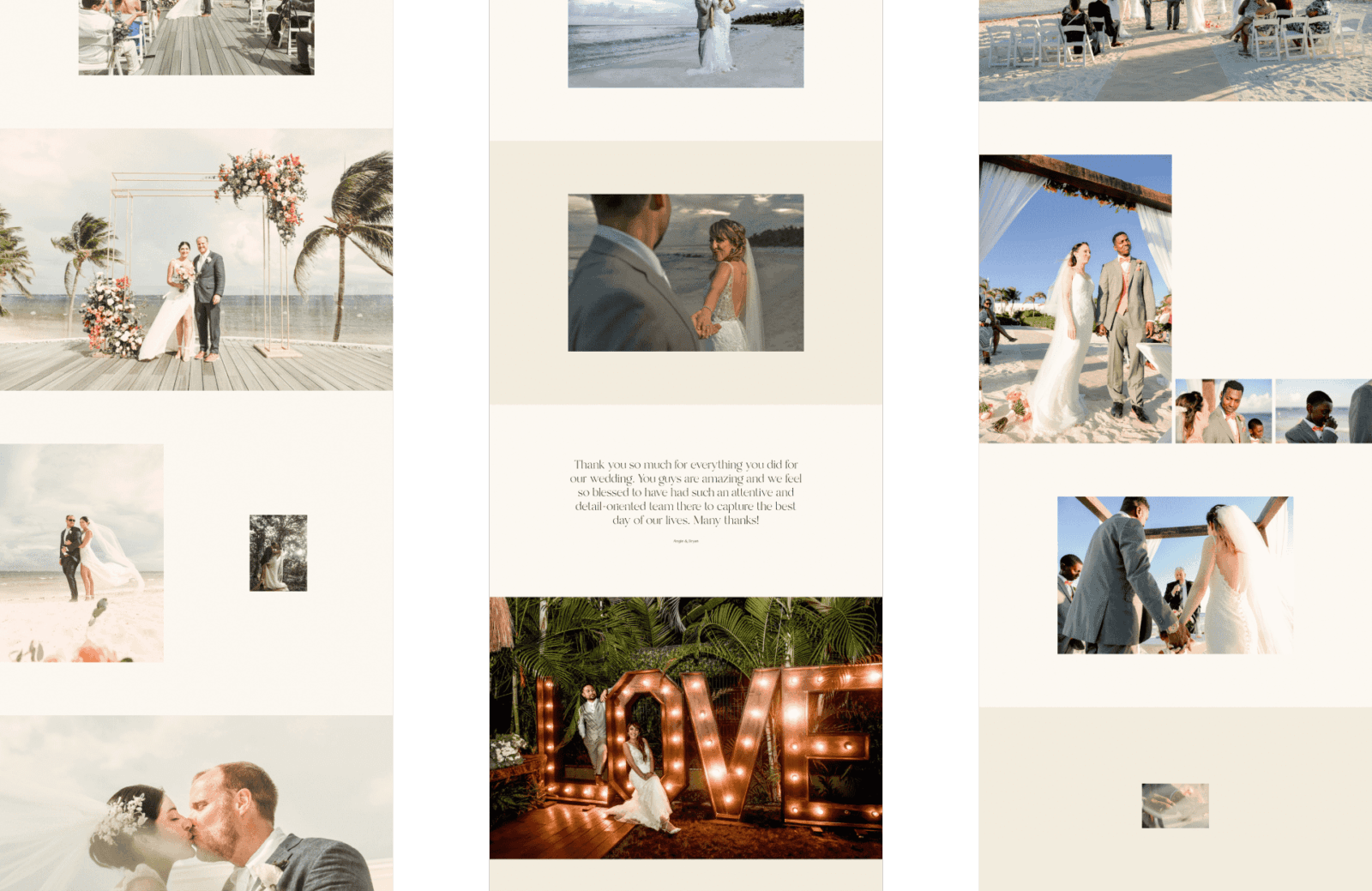 Abbiamo pensato il sito web come un'esperienza digitale interattiva, che grazie ad animazioni e interazioni delicate e soffuse immergono l'utente nell'atmosfera sognante dei matrimoni tropicali.