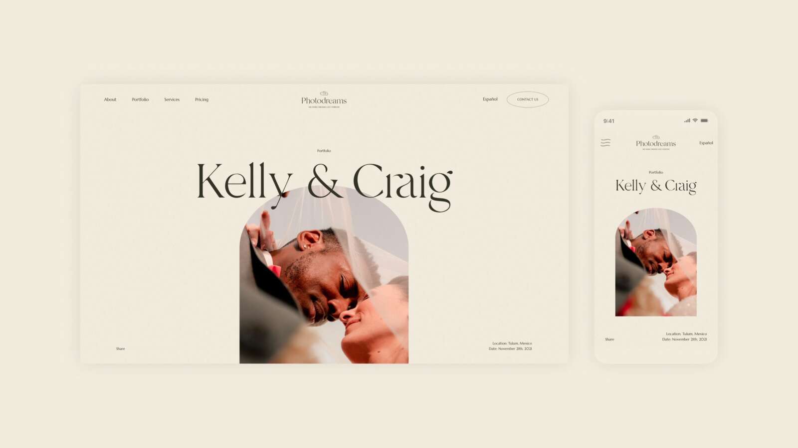 Photodreams è uno studio fotografico specializzato nello shooting di matrimoni nella Riviera Maya messicana. Abbiamo definito una strategia di potenziamento del brand, rinnovando la brand identity, dal logo fino al sito web.